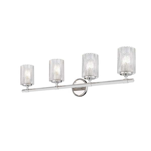 Dover Street 4 Light Vanity, Polished Nickel & Clear