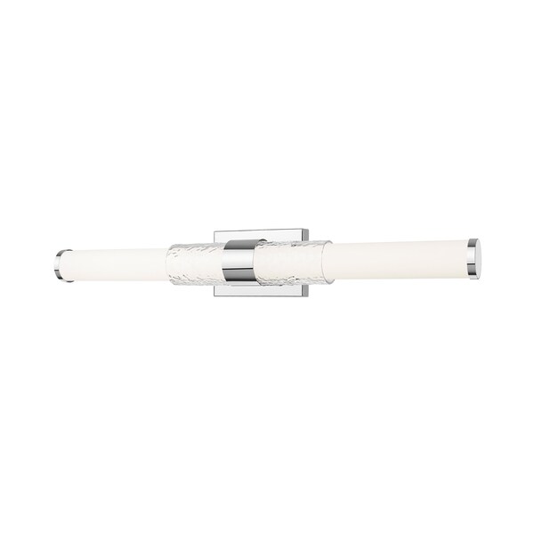 Clean lines meet reflective brilliance in this wide chrome vanity light. The sculpted glass creates gentle texture, while the high-shine frame amplifies light and elegance in equal measure. Its a stunning balance of modern form and fluid beauty.
