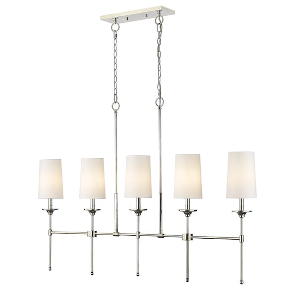 Emily 5 Light Island, Polished Nickel & Off White