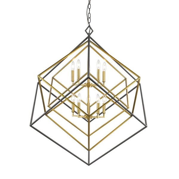 Stunning in both design and finish, this olde brass and bronze 10-light chandelier updates a living space with space-age cosmopolitan personality. Enjoy the engaging and juxtaposed look of nestled geometric shapes and a dual layer of candelabra-style bulb mounts.