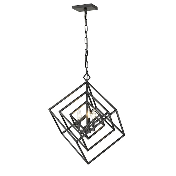 Incredibly bold with geometric flair, this 12-light chandelier grabs attention while suspended from the ceiling. This modern light fixture is ideal for use over a dining table or kitchen island, complete with candelabra bulbs and a matte black finish.