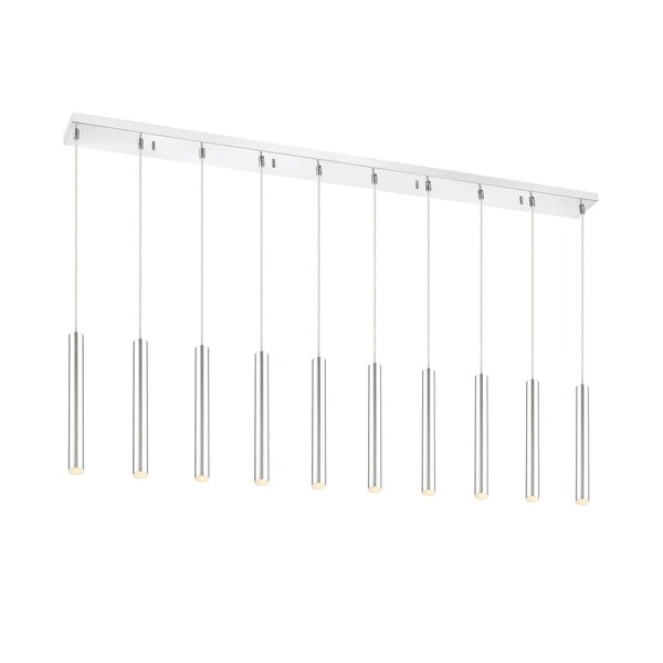 Full of quirk and style, this stunning ten-light island pendant transforms with clean lines. The open and clean design casts a soft glow, elevated by a shiny chrome finish.