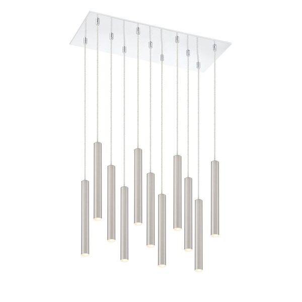 Stunning in a modern bathroom, this eleven-light pendant light adds sleek sophistication and a clean feel. Create a beautiful visual with radiant brushed nickel and a windchime-inspired silhouette.