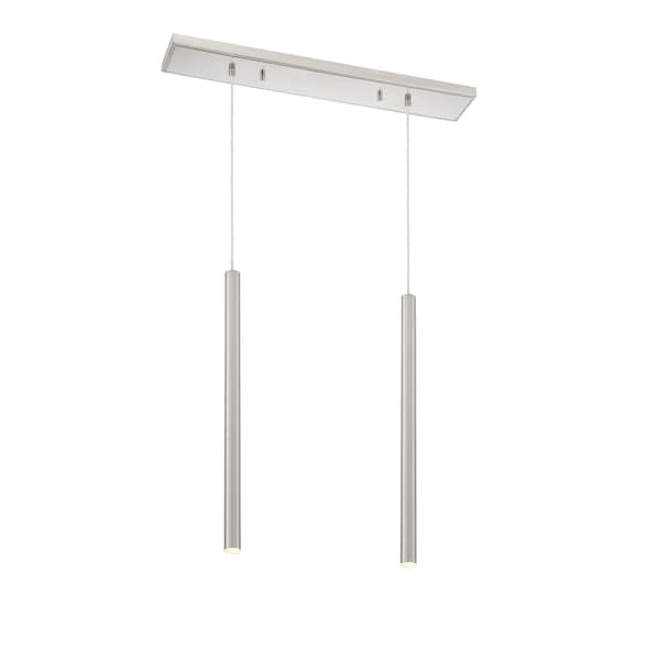 The brushed nickel finish from this two-light pendant light is full of charm. Create a stunning visual with the bright metallic brilliance of elongated modern design.