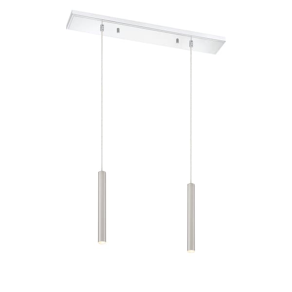 Dress up a sleek space with the clean lines from this two-light pendant light in brushed nickel. Full of elongated details, the modern silhouette adds instant refinement to any kitchen or bathroom.