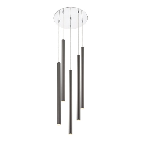 Windchime-inspired, this five-light pendant light is full of playful, radiant charm. The pearl black finish casts a soft glow over the delicate silhouette.