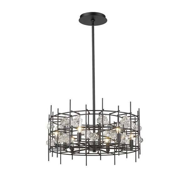 Light up a dining room, living room, or foyer with the cool, contemporary allure of this matte black chandelier. An eye-catching array of linear metal accents surround six shining bulbs for a sophisticated design that radiates modern elegance.