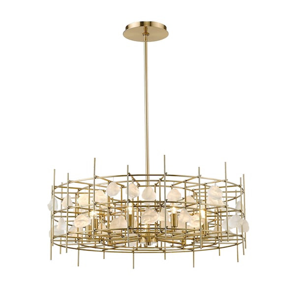 Light up a dining room, living room, or foyer with the cool, contemporary allure of this aged brass chandelier. An eye-catching array of linear metal accents surround nine shining bulbs for a sophisticated design that radiates modern elegance.