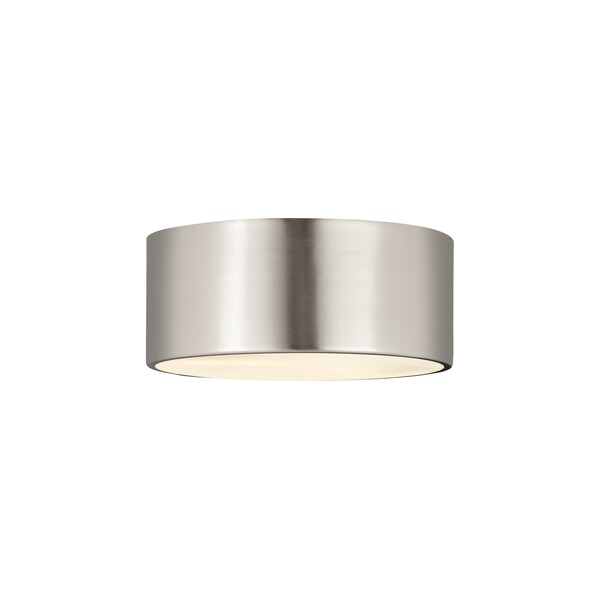 Elegant simplicity offers a minimalist design that captures attention, making this contemporary flushmount metal drum two-light ceiling light a versatile selection. This light from the Harley collection is perfect for casual, easy living spaces, offering a sleek large-form silhouette with a shade made of brushed nickel finish steel. Bring industrial-inspired vibes to a kitchen, dining space, or hallway with this tasteful fixture.