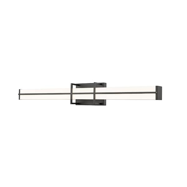 Simplicity sets the tone for the Harrison dimmable LED bath light. Its long, linear profile is perfect over your sink and counter, offering bright, even illumination with selectable color temperature to create the perfect ambiance for you. A rectangular diffuser is frosted for even illumination while a stylish bracket design sports a rich matte black finish for a crisp, versatile look in your bathroom.