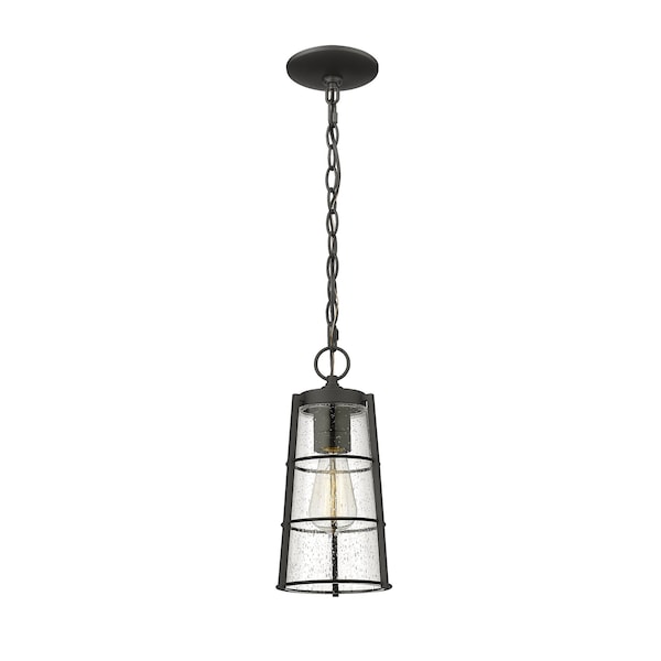 Helix 1 Light Outdoor Chain Mount Ceiling Fixture, Black And Clear Seedy