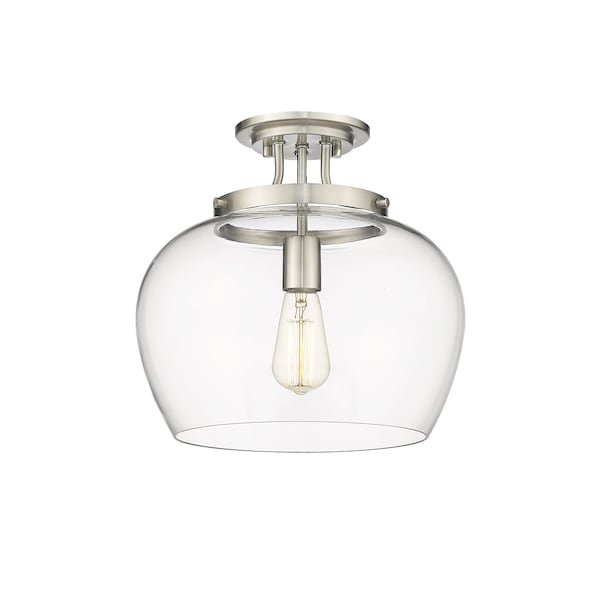 Joliet 1 Light Semi Flush Mount, Brushed Nickel & Clear