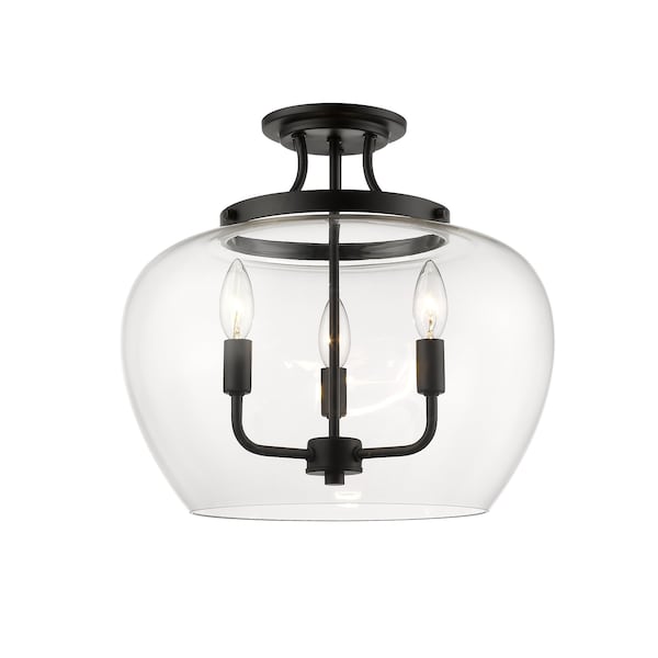 Joliet 3 Light Semi Flush Mount, Matte Black & Clear