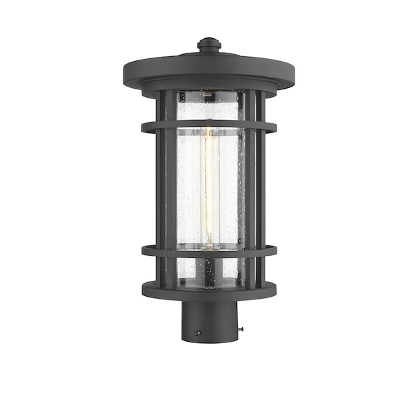 Jordan 1 Light Outdoor Post Mount Fixture, Black And Clear Seedy
