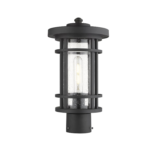 Jordan 1 Light Outdoor Post Mount Fixture, Black And Clear Seedy