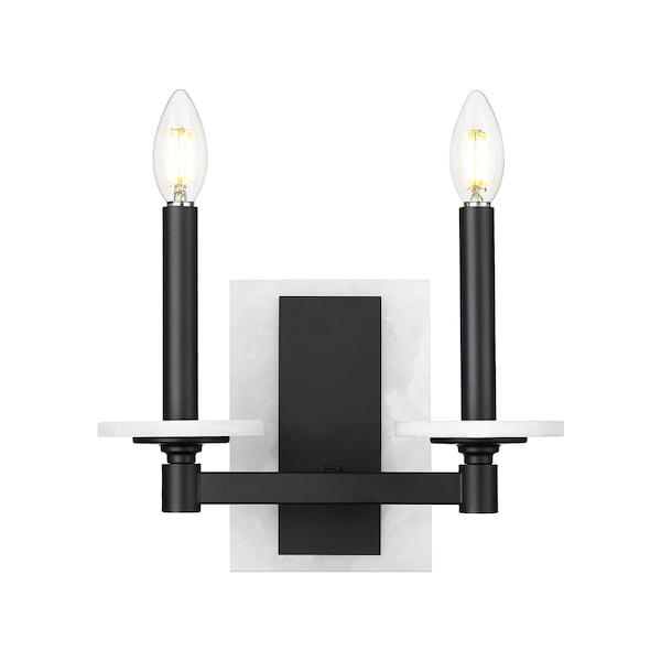 Where form meets contrast, beauty finds balance. This two-light sconce pairs the bold simplicity of matte black with the soft, organic glow of solid alabaster spheres. Its clean lines and sculptural backplate make a refined statement on any wall, offering ambient light with an edge of modern artistry.