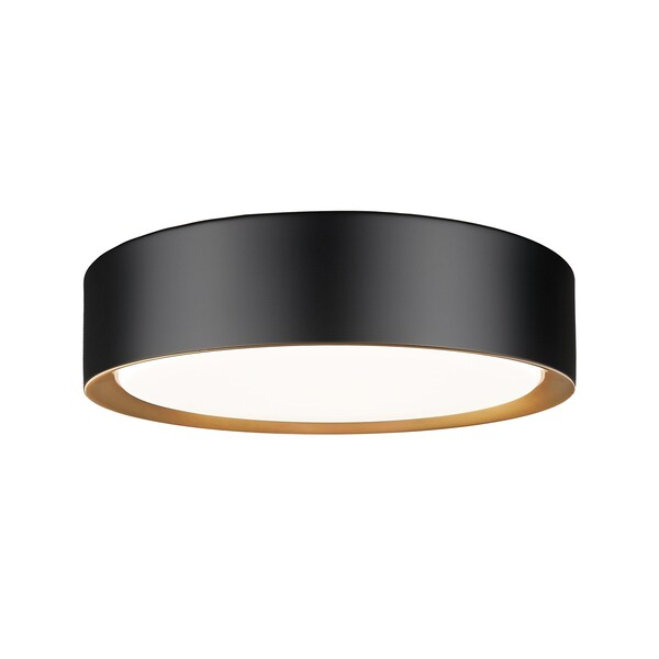 An inner finish of modern gold brings impeccable warmth and sophistication to this modern one-light flush mount ceiling light. Stunning over a bedroom, hall, or living room seating area, it boasts a clean, timeless silhouette complete with a frosted acrylic diffuser and integrated LEDs for bright, efficient illumination. Its matte black outer finish adds contrast and subtle sophistication in any space.