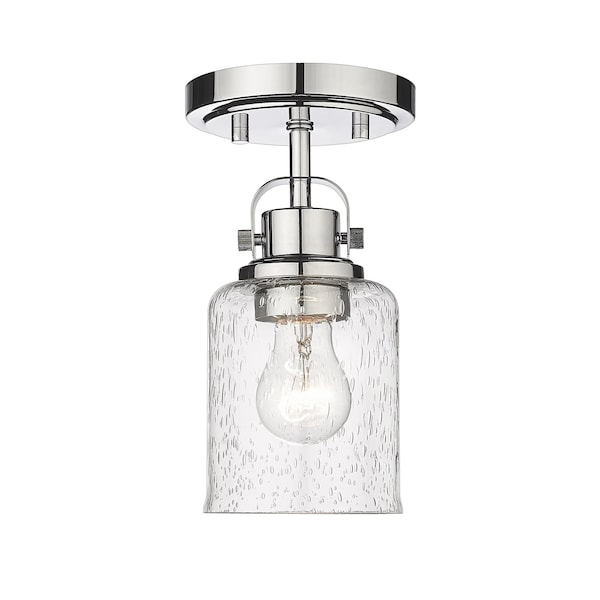 Kinsley 1 Light Flush Mount, Chrome And Clear Seeded