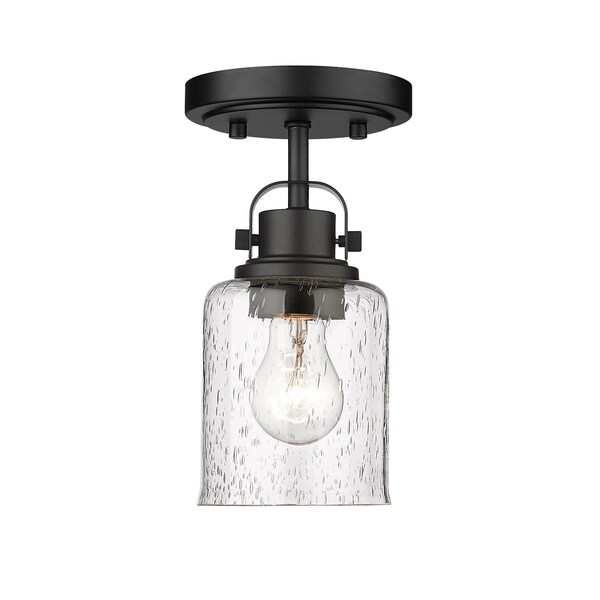 Kinsley 1 Light Flush Mount, Matte Black And Clear Seeded