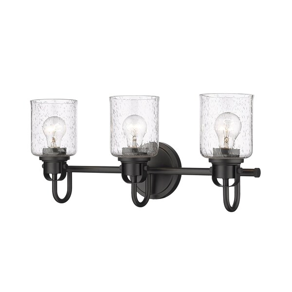 Kinsley 3 Light Vanity, Matte Black And Clear Seeded