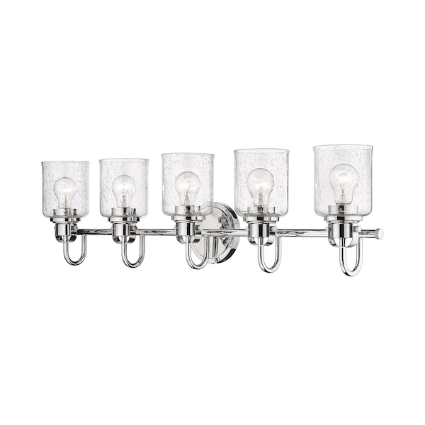 Kinsley 5 Light Vanity, Chrome And Clear Seeded