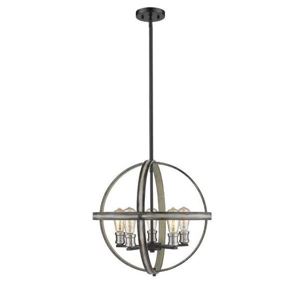 Full of industrial charm, this five-light pendant light brightens up entryways and living rooms. With an open geometric frame constructed of faux barnwood, the sleek silhouette highlights exposed lightbulbs along a distressed ashen hue.