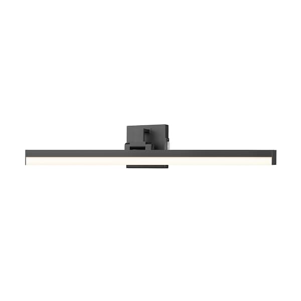 A striking finish/color contrast exacerbates the chic industrial and modern motifs of this elegant one-light vanity light. Sculptural elements maintain symmetry and clean lines in a fixture fashioned of bold matte black finish aluminum with a frosted plastic diffuser, emitting dimmable lighting with options for perfecting the level of ideal white color.