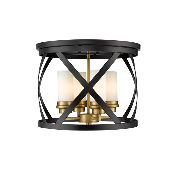 Malcalester 4 Light Flush Mount, Matte Black, Olde Brass & White