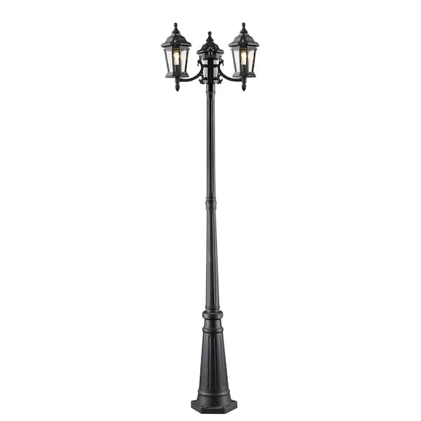 Melbourne 3 Light Outdoor Post Light, Black & Clear Beveled (Discontinued)