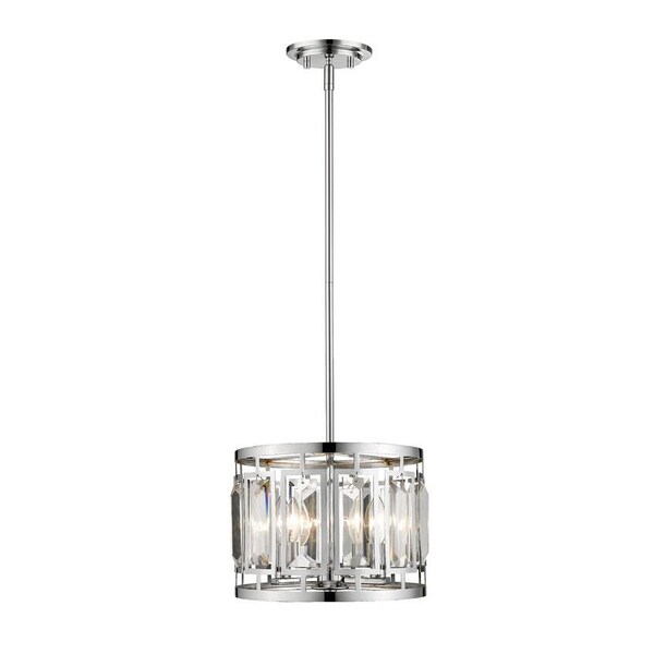 Finish a custom design scheme based on sheer elegance with lighting that reflects a glamorous metropolitan flavor. This chrome and clear glass three-light pendant builds from a stylishly round frame and shows off the beauty of cut crystal panels over romantic candelabra-style bulb bases.