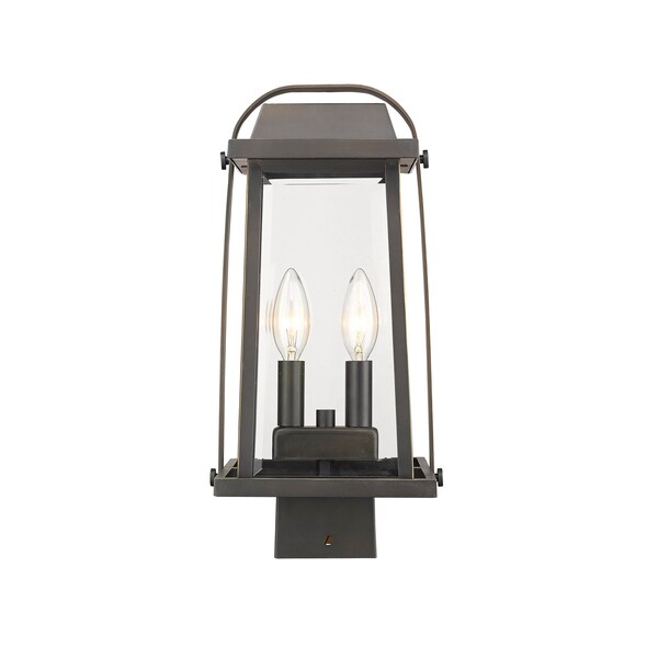 Millworks 2 Light Outdoor Post Mount Fixture, Oil Rubbed Bronze & Clear Beveled