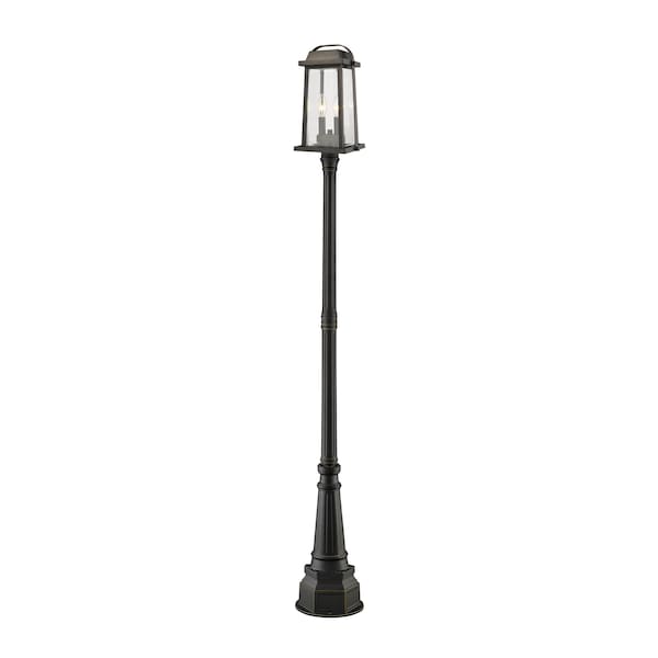 Millworks 2 Light Outdoor Post Mounted Fixture, Oil Rubbed Bronze & Clear Beveled