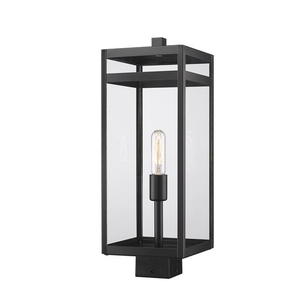 Nuri 1 Light Outdoor Post Mount Fixture, Black & Clear
