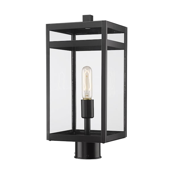 Nuri 1 Light Outdoor Post Mount Fixture, Black & Clear