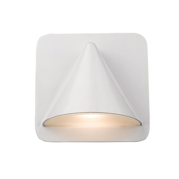 Bring a modern touch to the exterior of your home with this stylish energy-efficient outdoor LED wall light. Featuring a white finish over metal construction, the sconce casts downward illumination with a half-cone light and sand blasted glass diffuser.