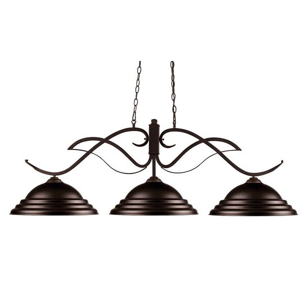 Bold flowing curves define this three light fixture. Finished in bronze, this fixture uses bronze metal shades to create a contemporary, yet classic look. This fixture includes 72’’ of chain on both sides to ensure a perfect hanging height.