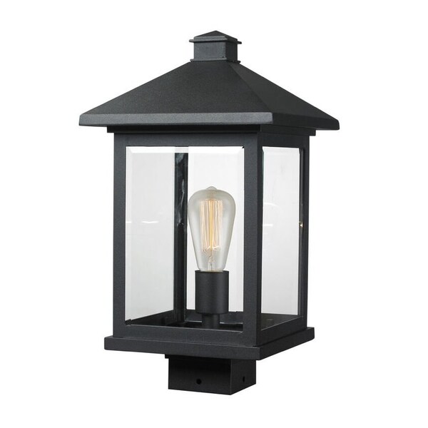Portland 1 Light Post Mount Light, Black & Clear Beveled