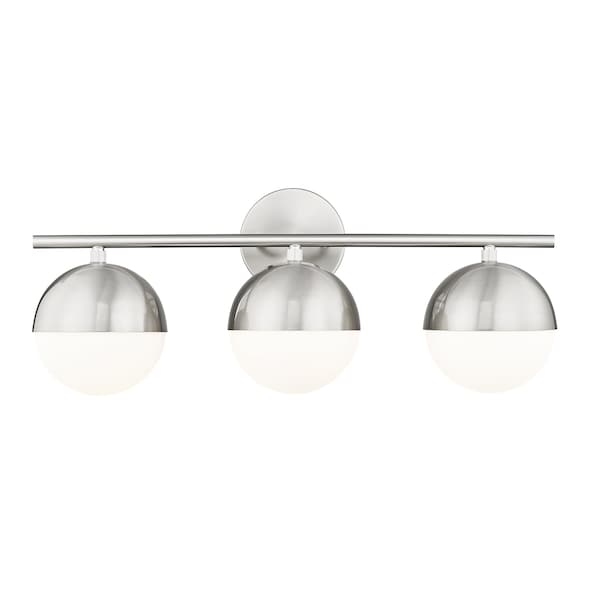 Realm Sphere 3 Light Vanity, Brushed Nickel/Matte Opal, 24 In W x 9.75 In H