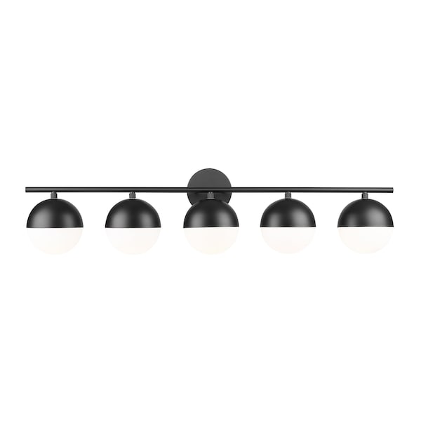 Realm Sphere 5 Light Vanity, Matte Black/Matte Opal, 40 In W x 9.75 In H