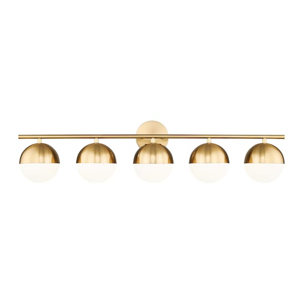 Realm Sphere 5 Light Vanity, Modern Gold/Matte Opal, 40 In W x 9.75 In H