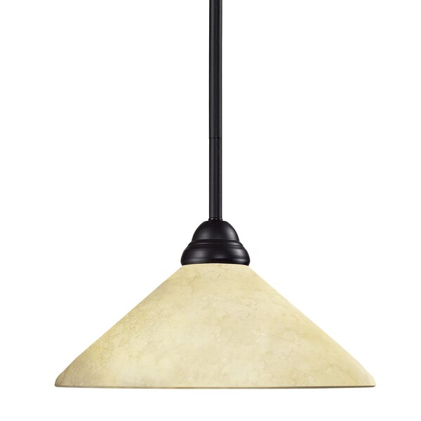 Elegant and traditional best describes this beautiful mini pendant fixture. Finished in bronze and paired with golden mottle shades, this one light fixture would be equally at home in the game room, or anywhere else in the house needing a touch of timeless charm. Adjustable rods are included to ensure a perfect hanging height.