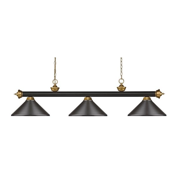 Riviera 3 Light Billiard Light, Bronze + Satin Gold & Bronze
