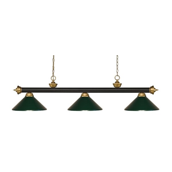 Riviera 3 Light Billiard Light, Bronze + Satin Gold & Dark Green