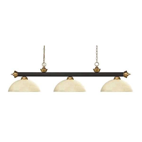 Riviera 3 Light Billiard Light, Bronze + Satin Gold & Golden Mottle