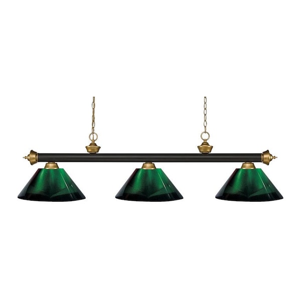 Riviera 3 Light Billiard Light, Bronze + Satin Gold & Green
