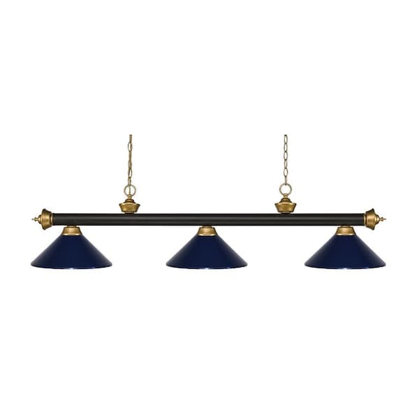 Riviera 3 Light Billiard Light, Bronze + Satin Gold & Navy Blue