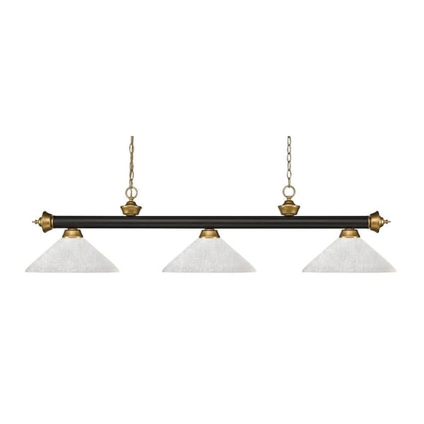 Riviera 3 Light Billiard Light, Bronze + Satin Gold & White Linen
