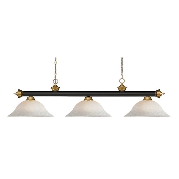 Riviera 3 Light Billiard Light, Bronze + Satin Gold & White Mottle