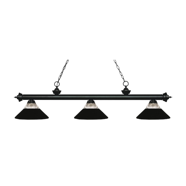 Riviera 3 Light Billiard Light, Matte Black & Clear Ribbed