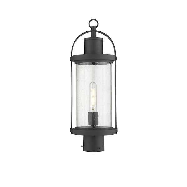 Roundhouse 1 Light Outdoor Post Mount Fixture, Black And Clear Seedy